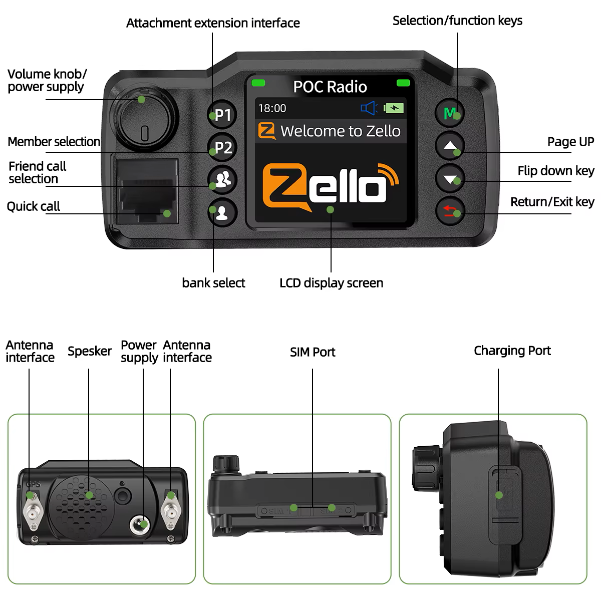• Zello-Ready – Preloaded Android OS supports Zello app for instant global communication.
