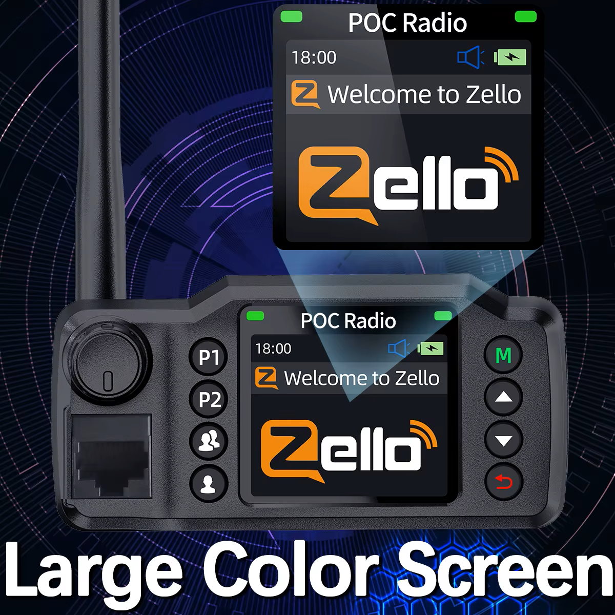 • HD Display – Clear, bright screen for Zello and Android apps.