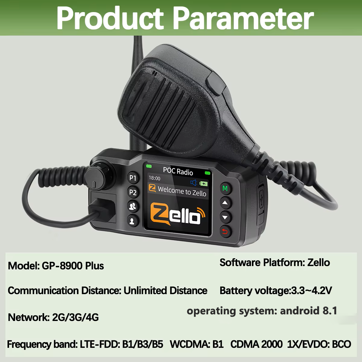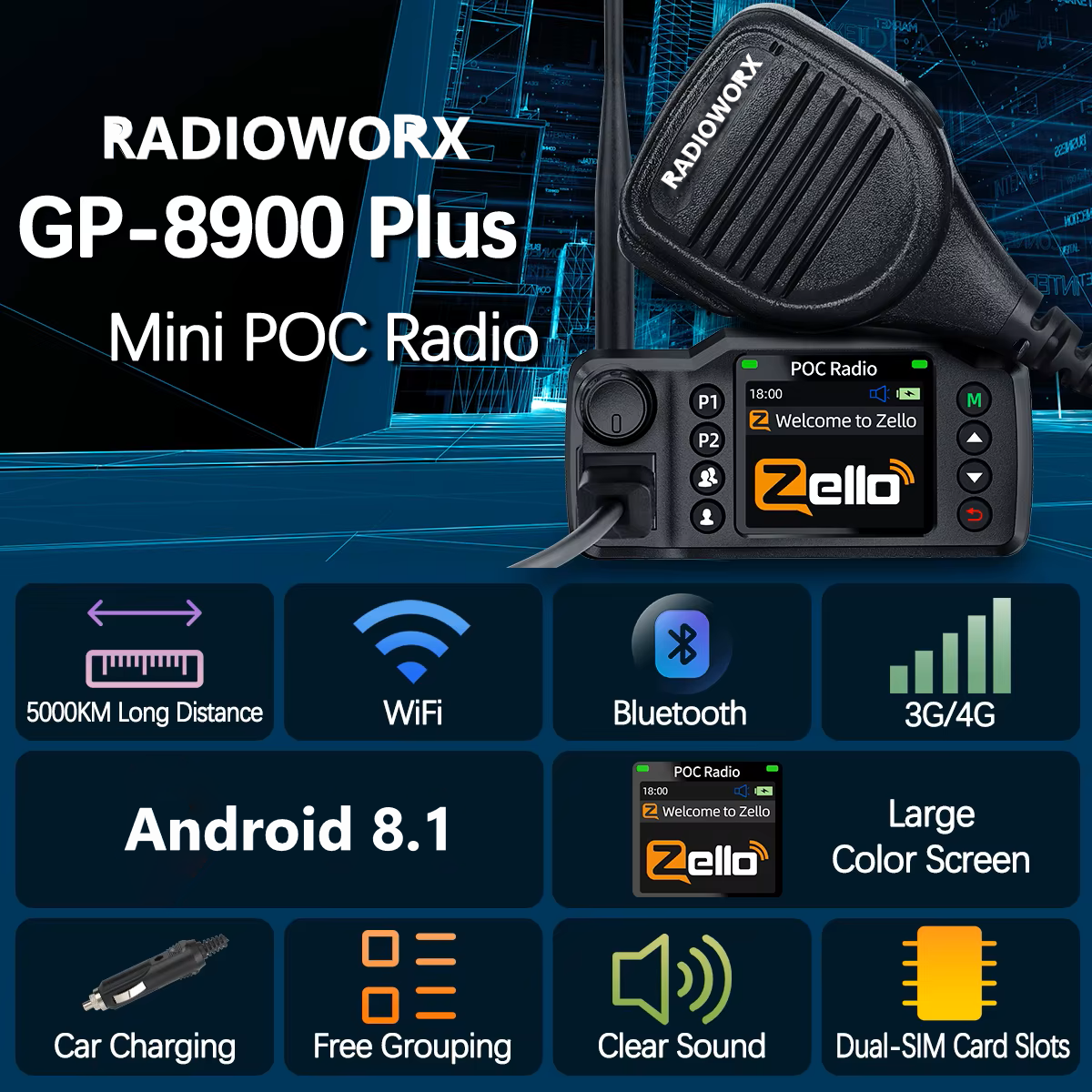 The GP-8900 Plus Zello Radio is a next-generation Push-to-Talk Over Cellular (PoC) mobile radio designed for Zello users who want clear, instant communication without relying on limited-range walkie-talkies. Running Android, the GP-8900 Plus integrates seamlessly with Zello, making it easy to stay connected anywhere your 3G/4G/WiFi service reaches.